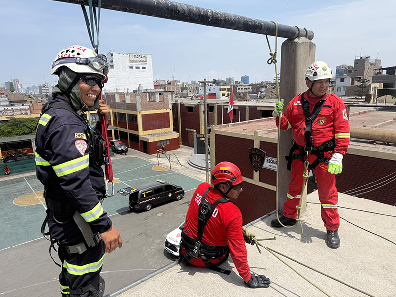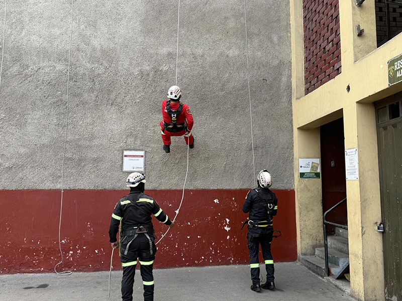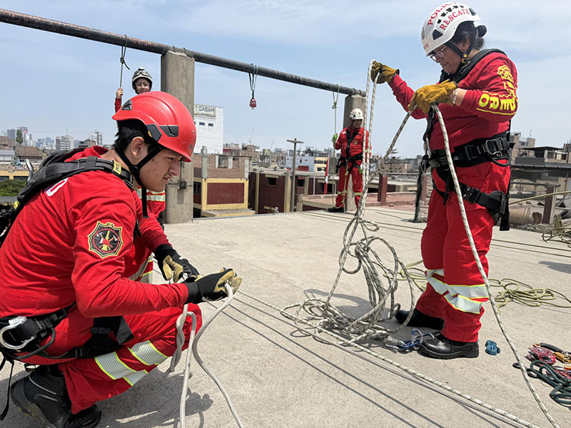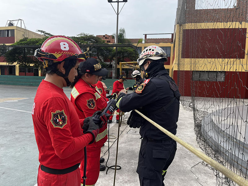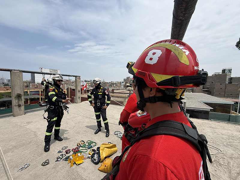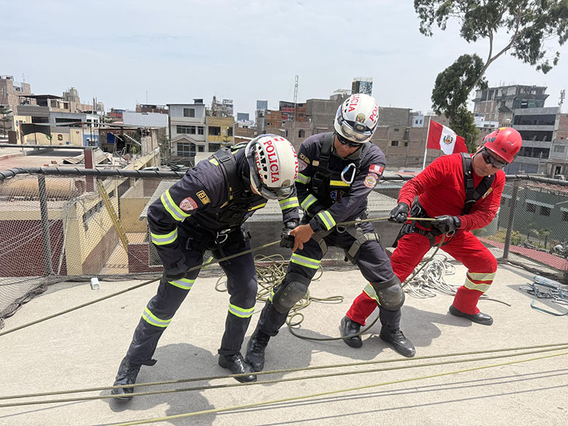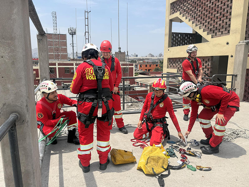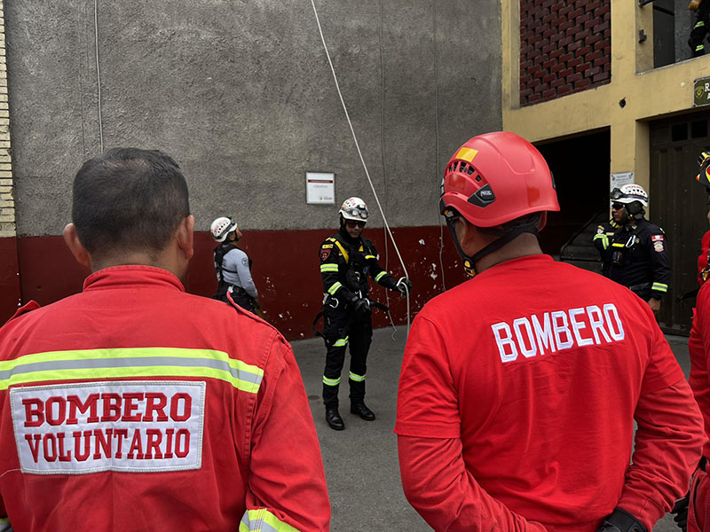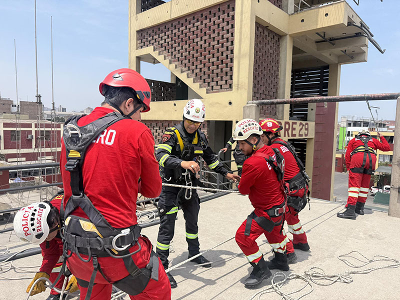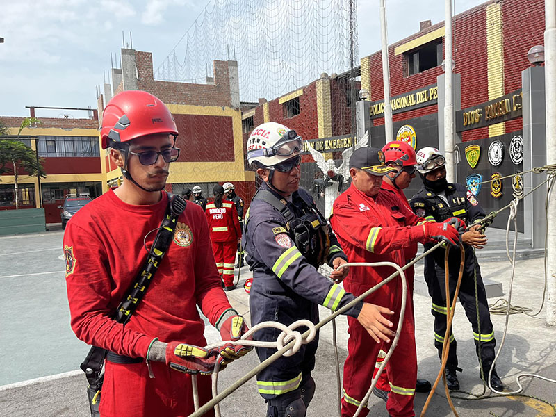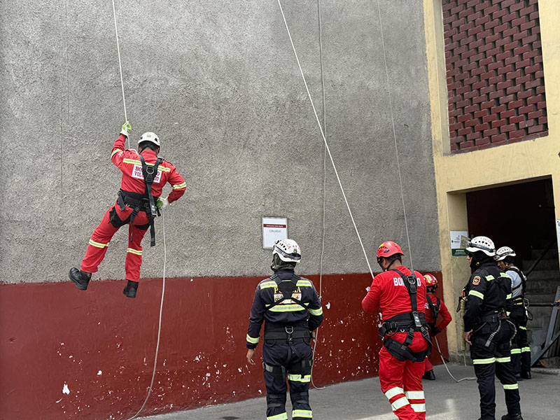 En un trabajo conjunto, efectivos de la Compañía de Bomberos Voluntarios BFB Victoria 8 y la División de Emergencia de la PNP realizaron una práctica operativa de manejo de cuerdas y armado de sistemas de rescate, orientada a fortalecer sus capacidades y estandarizar procedimientos en intervenciones de emergencia.